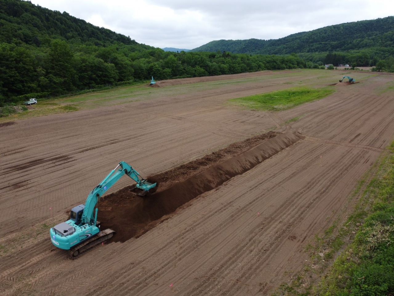 道東エリアを中心に道路工事、河川工事、畑工事など幅広く行っています。